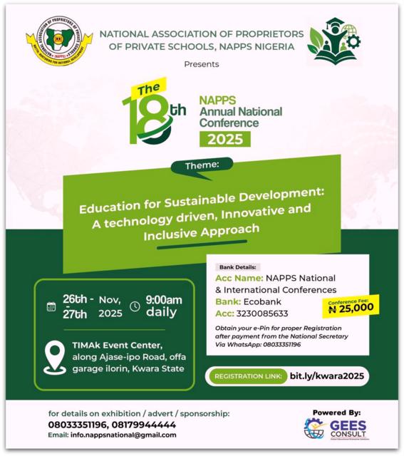 NAPPS is the united voice of Nigeria’s private school owners. More than an association, it is a thriving community where visionary educators connect, share ideas, and raise the bar for quality education. Through strong collaboration, innovation, and advocacy, NAPPS helps schools grow, empowers proprietors, and drives excellence across the sector. Together, we are shaping schools that inspire success, nurture future leaders, and strengthen the nation’s development.